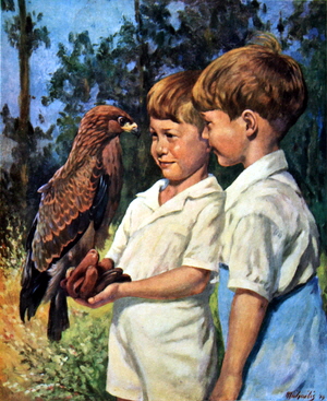 The first section is an introductory article by HV Morton entitled Tut-ankh-amen’s Gold: Into the Land of Egypt. This is laid out on four pages, each decorated on one margin with depictions of the art and heiroglyphs of Ancient Egypt in blue. The text is very similar to sections on pages 55 to 57 of Morton’s book “Middle East” (published by Methuen, London, on 5 June 1941).